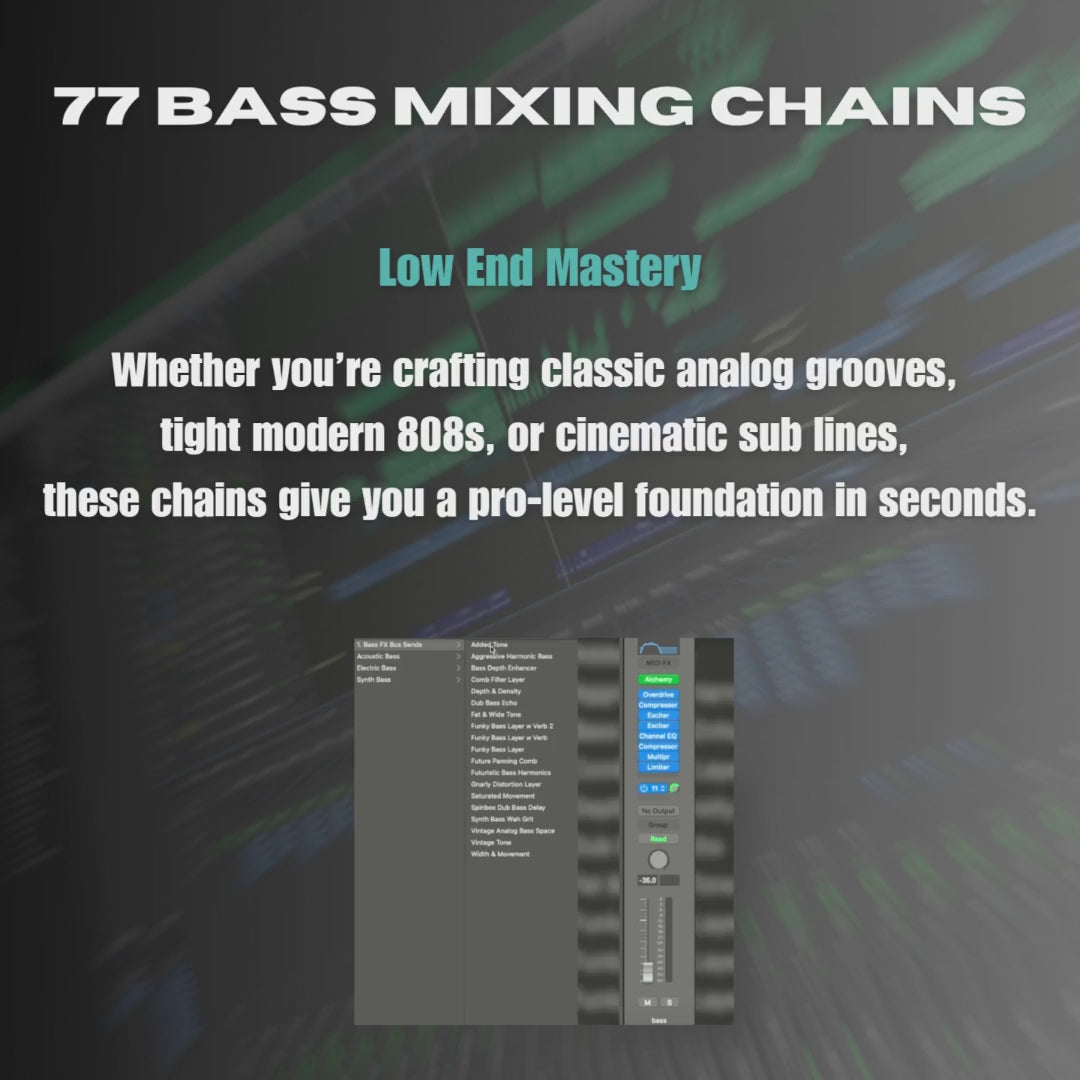 Whether you’re crafting classic analog grooves, tight modern 808s, or cinematic sub lines, these chains give you a pro-level foundation in seconds.