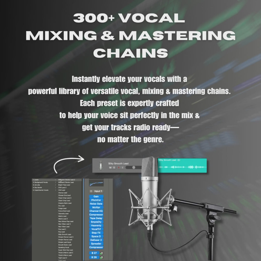 Get an instant, pro-level sound with 300+ vocal, mixing, and mastering chains—all using 100% stock plugins.