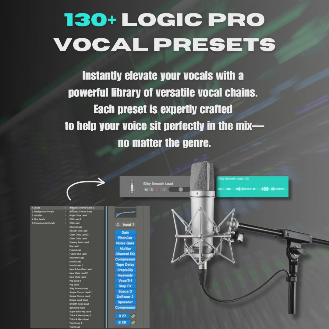 100+ Custom Vocal Chain Presets for Logic Pro. All Stock Plugins, No Guesswork, Instant Results.